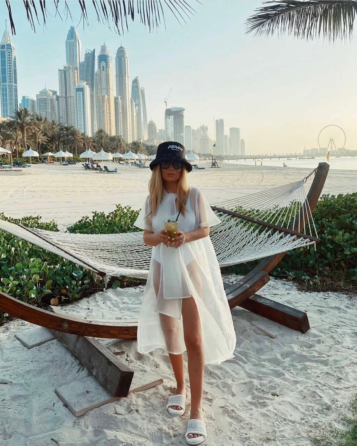 Забележителният акцент е голямата панделка, която придава драматичен и женствен завършек. Тя може да бъде носена по различни начини – завързана като обемен детайл или оставена да пада свободно като ефирен шал, придавайки на визията допълнителна динамика и стил.